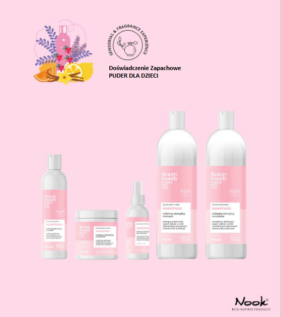 Beaty Family Sweetness jest nową rodziną produktów dedykowaną pielęgnacji delikatnych i cienkich włosów z tendencją do plątania się i dlatego trudnych do rozczesywania. Idealna do wszystkich rodzajów włosów - szczególnie tych długich oraz delikatnych, które wymagają nawilżenia, subtelności i jedwabistości, aby utrzymać je miękkie, łatwe do układania, jak i rozczesywania, bez jednoczesnego ich obciążania.
